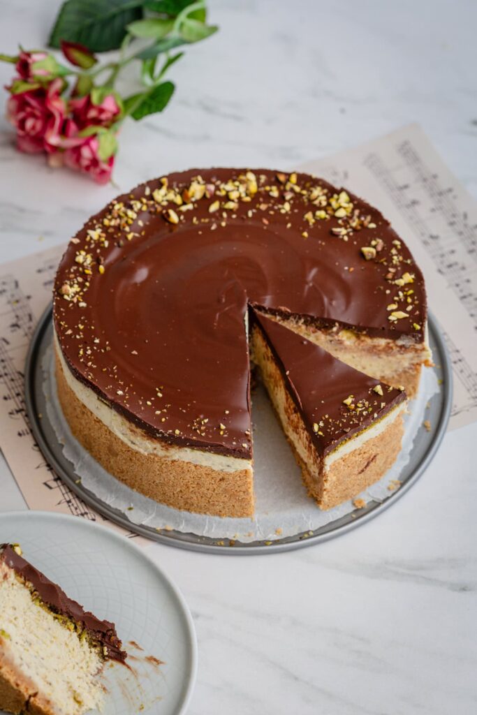 Perfect for birthdays, holidays, or any special occasion, this pistachio chocolate cheesecake recipe is easy to make, no-bake, and sure to impress with its decadent flavors and elegant presentation.