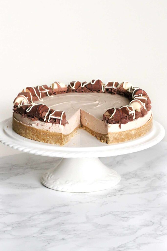 This Kinder cheesecake is sure to be a new favourite! It’s a smooth, creamy, no-bake cheesecake with Kinder chocolate throughout and Kinder Bueno pieces on top. It’s great for birthdays, BBQs or any other occasion!