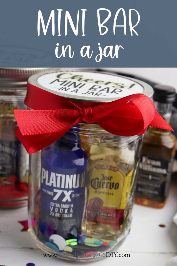 Finding fun DIY gifts for the men in your life can be tricky, but mason jar gifts make it easy and creative! If your significant other or a friend enjoys mixology, this Bar in a Jar gift is the perfect idea. Quick to assemble, customizable, and totally impressive, it lets your loved ones craft a variety of delicious mixed drinks using mini alcohol bottles.