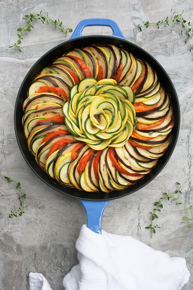 This vegan ratatouille tian is a beautiful combination of two classic easy French dishes, bringing together layers of flavorful vegetables like eggplant, tomatoes, and summer squash. Baked until tender and aromatic, it’s a vibrant, wholesome dish that highlights the natural sweetness and freshness of seasonal produce. Perfect as a healthy side dish or a light main, it’s both simple to prepare and impressive to serve.