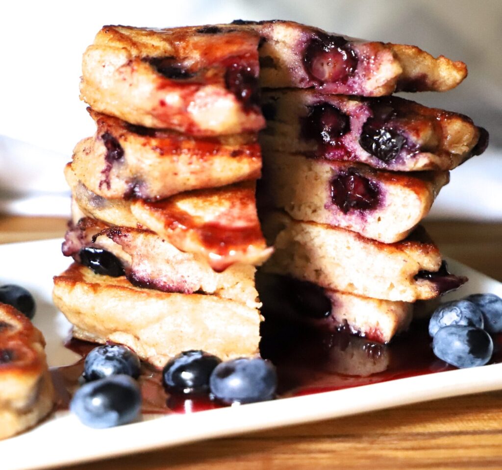 Fluffy and tender blueberry whole wheat pancakes made from scratch are the perfect choice for a cozy weekend breakfast or brunch!