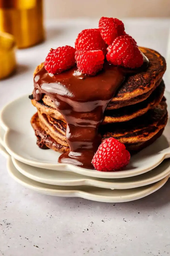 These fluffy chocolate pancakes are bursting with rich chocolate flavor and make the perfect sweet treat for brunch. Topped with a drizzle of chocolate ganache for an extra touch of decadence, this indulgent pancake recipe can be ready in just 45 minutes.
