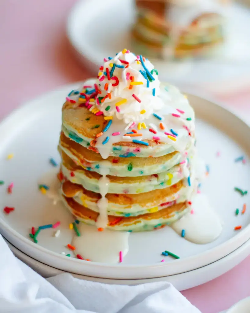 Homemade funfetti pancakes are a playful and colorful way to start your day! Quick and easy to make with simple pantry staples and rainbow sprinkles, they turn an ordinary breakfast into a cheerful, unforgettable treat.