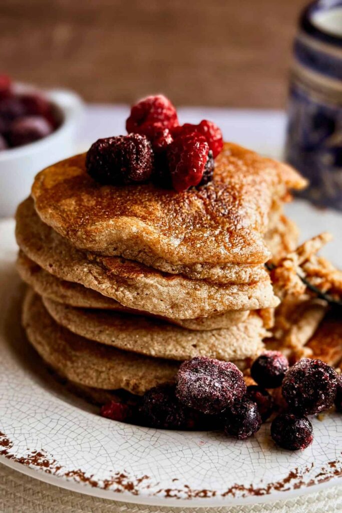 Fluffy vegan whole wheat pancakes that are simple to make and come together in just one bowl. With only a few pantry staples, you can whip up this quick and satisfying breakfast in no time!