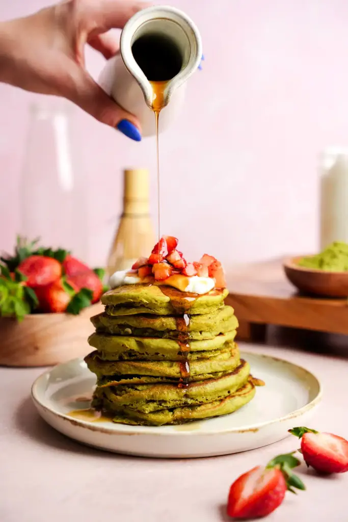 Fluffy vegan matcha pancakes are made with wholesome, plant-based ingredients and just the right touch of sweetness. Light, airy, and easy to prepare, these pancakes are a delightful treat for all matcha lovers.