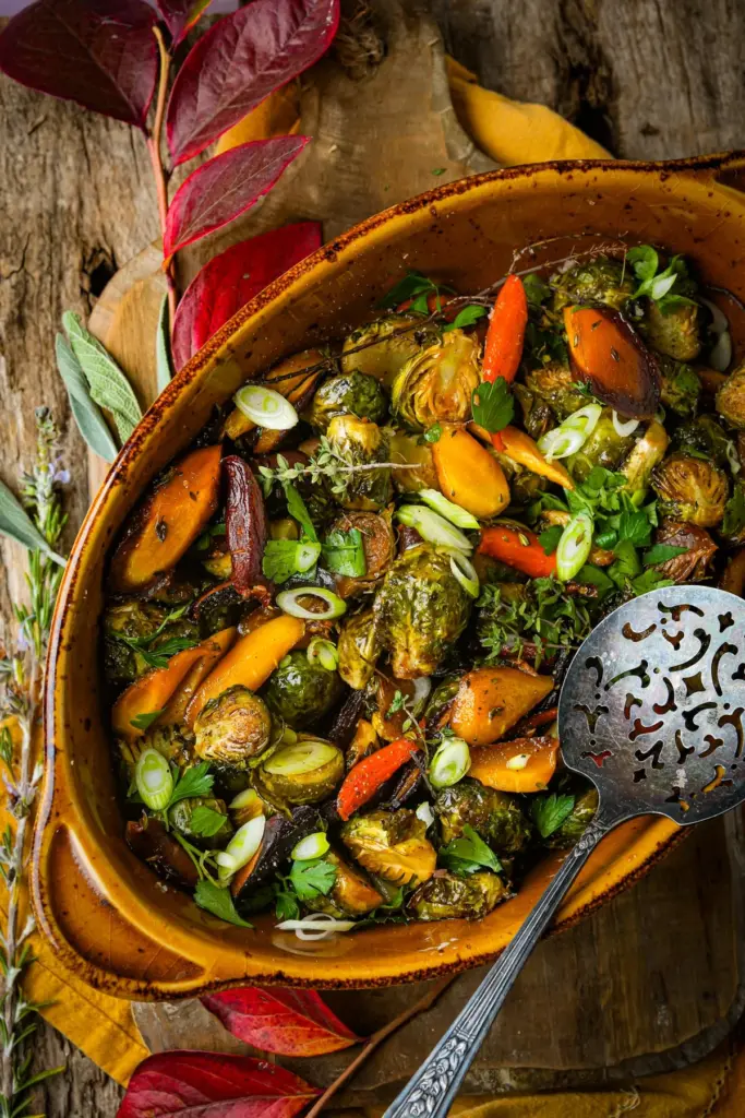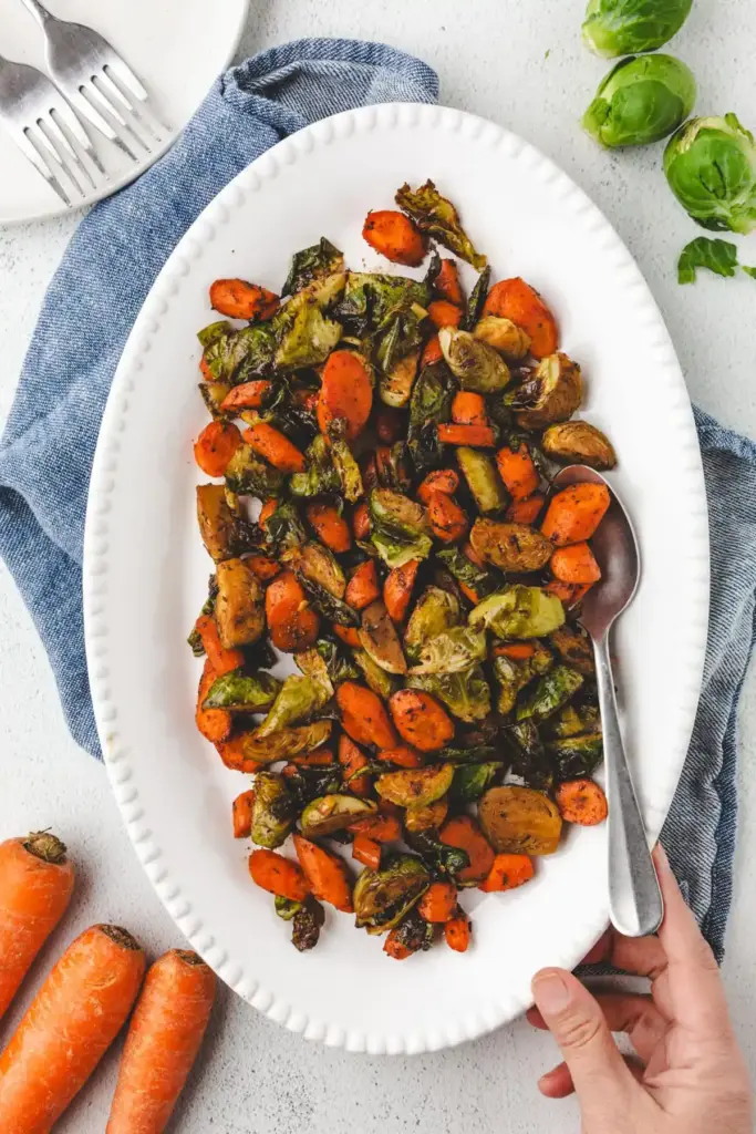 16. Maple Balsamic Roasted Brussels Sprouts and Carrots