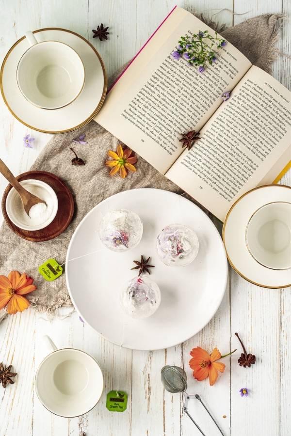 18. Green Tea Bombs Recipe with Edible Flowers