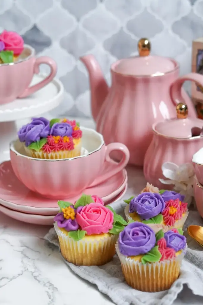 There’s something truly charming about a classic tea party — the cozy atmosphere, delicate teacups, and the simple joy of sharing sweet treats with friends. It feels timeless and a little magical. ✨ And what better way to make your gathering even more special than with adorable tea party cupcakes topped with elegant floral buttercream frosting? These beautifully decorated cupcakes are not only delicious but also add a touch of grace and color to the table, making every tea party feel like a special occasion.
