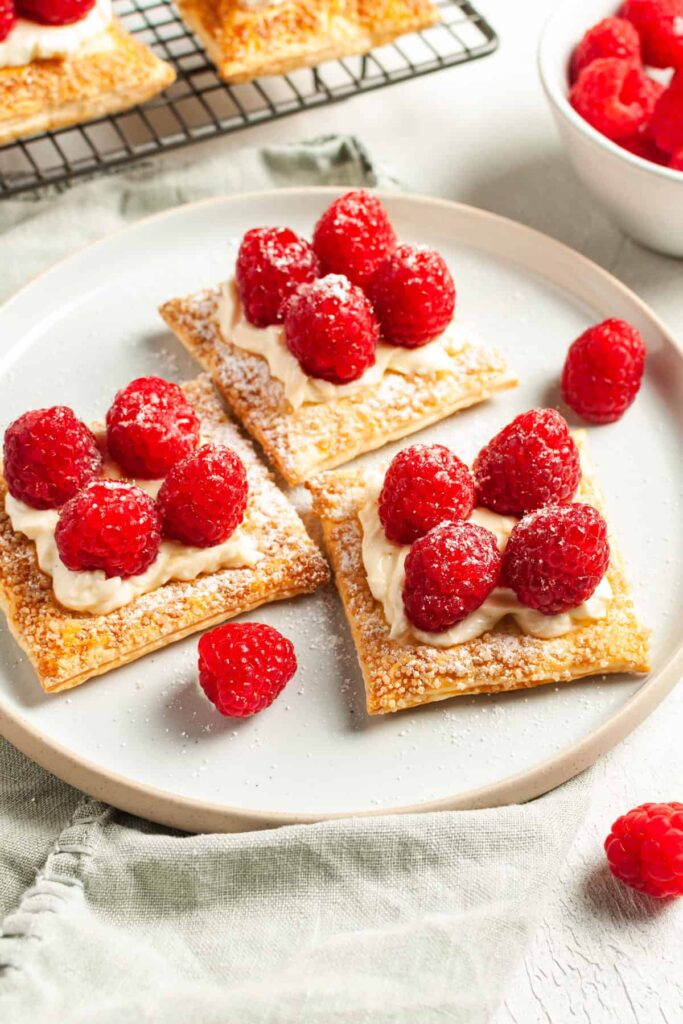 You’ll love these quick and delicious Raspberry Tartlets! Using store-bought puff pastry, each tart is filled with a creamy vanilla cream cheese mixture and topped with fresh, juicy raspberries. Perfectly bite-sized, these Mini Raspberry Tarts can be prepared in advance, making them an easy and impressive sweet treat that’s sure to become a favorite for brunch, dessert, or any gathering.