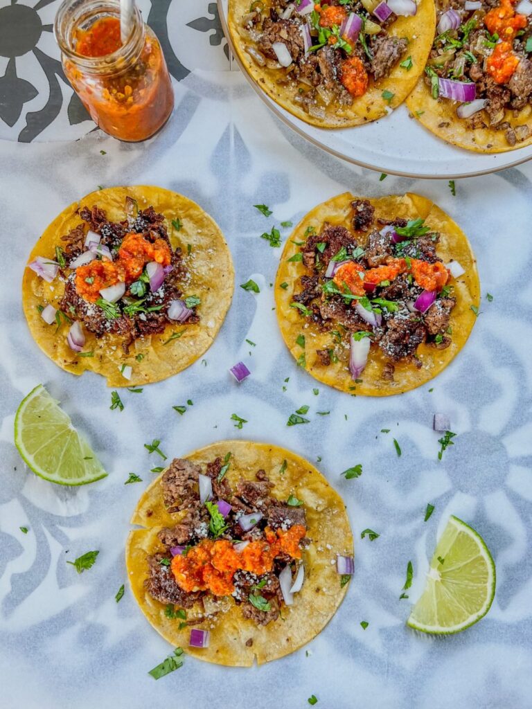 These Crispy Beef Smash Tacos are packed with bold, irresistible flavor and perfect for busy weeknights. The beef filling cooks easily in a crockpot, then gets smashed on the stove for that unbeatable crispy texture. Loaded with onions, fresh cilantro, a squeeze of lime, and topped with homemade hot sauce, these tacos taste like something straight from a taco truck. Juicy, crispy, and bursting with flavor, they’re sure to be a hit at any dinner or late-night snack.