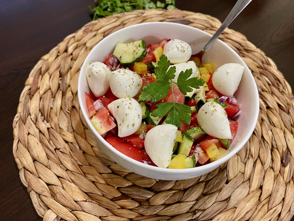 A Shirazi salad (named after the city of Shiraz in southern Iran) is a refreshing Persian salad made with finely chopped cucumber, tomato, and onion. It is typically dressed with olive oil, herbs, spices, and lime or lemon juice, creating a light, bright flavor that pairs well with many dishes.