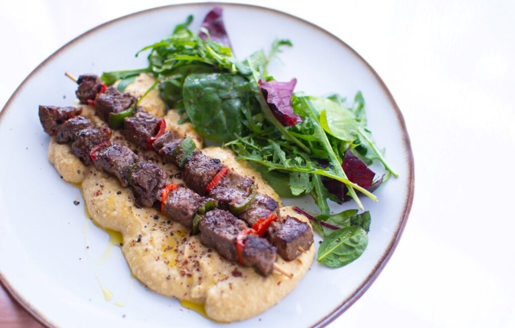 4. Spicy Beef Skewers with Hummus