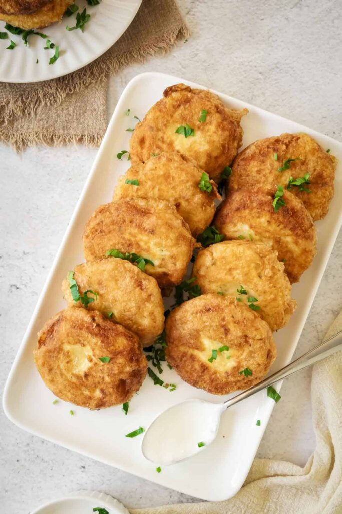 Golden brown and fried to crispy perfection, these mashed potato fritters are the ultimate side dish, appetizer, or brunch treat. Crispy on the outside, soft and fluffy on the inside, they’re irresistible every time.