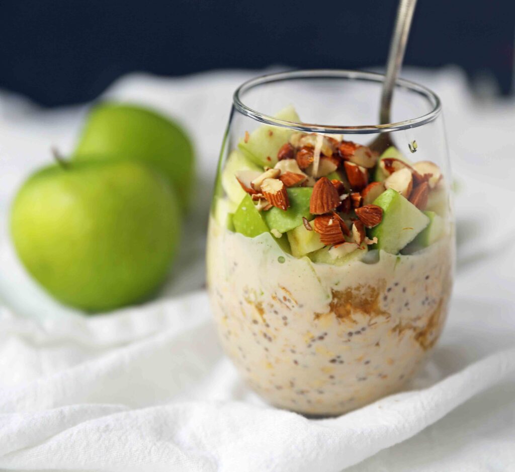 Wholesome rolled or steel-cut overnight oats made with creamy Greek yogurt, 100% pure maple syrup, crisp green apples, and crunchy almonds. This naturally sweet, no–added-sugar breakfast is hearty, satisfying, and perfect for starting your day on a healthy note.