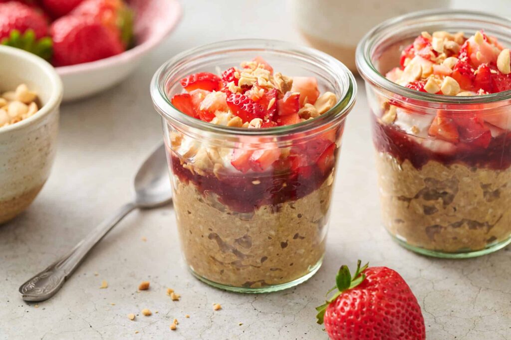 7. Peanut Butter and Jelly Overnight Oats (High Protein, No Added Sugar)