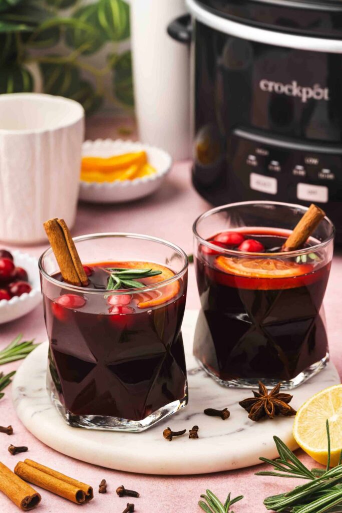 18. Easy Slow Cooker Mulled Wine with Cranberries and Rosemary