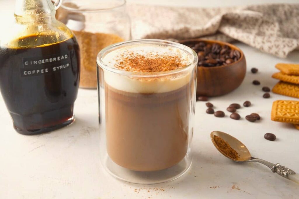 This gingerbread coffee syrup and latte tastes just like it’s from your favorite coffee shop! With an easy DIY method to make the syrup—no cheesecloth or strainer needed—you can create a rich, flavorful gingerbread latte at home. Keep reading for a simple coffee syrup trick and a delicious homemade gingerbread latte recipe perfect for the holiday season.