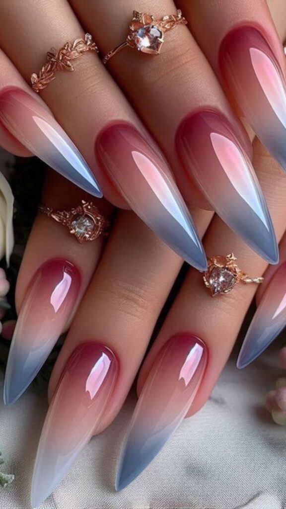 A rich berry-to-blue gradient with a glossy finish, blending bold and cool tones beautifully.