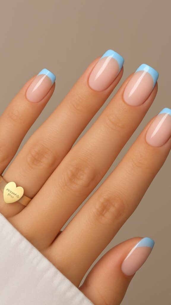Minimal Sky Blue Gradient Nails